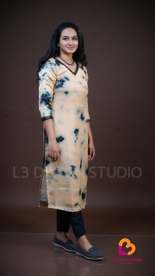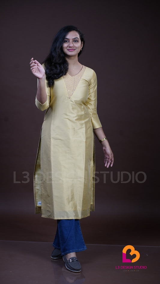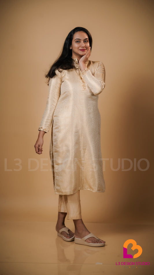 Golden Tissue Kurti with Cream Brocade Embellishments