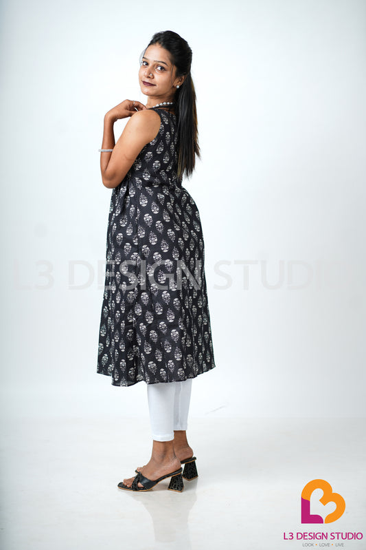 Stay stylish and comfortable in our timeless black and white checkered sleeveless dress, crafted from high-quality cotton fabric. Featuring side pockets and front buttons, this dress is perfect for casual outings, daily wear, or summer events.