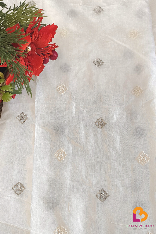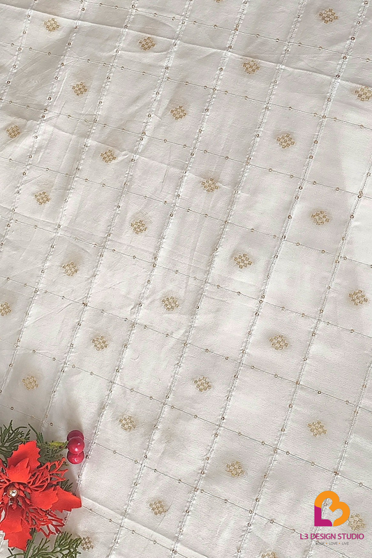3 Meter Chanderi Silk Fabric with Elegant Thread Booti Embroidery