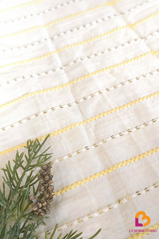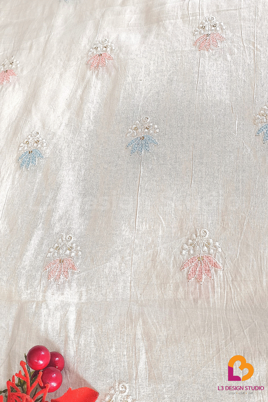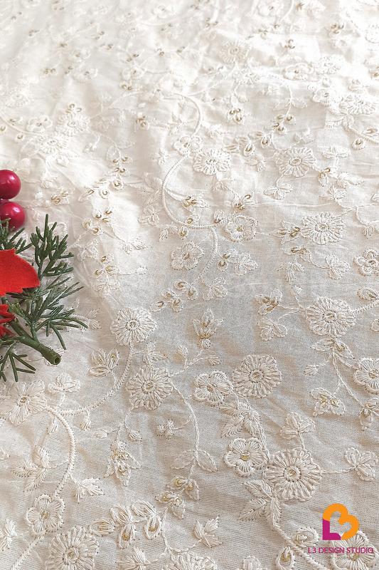 3 Meters of Dyeable Cotton Fabric with Floral Thread and Sequin Embellishments