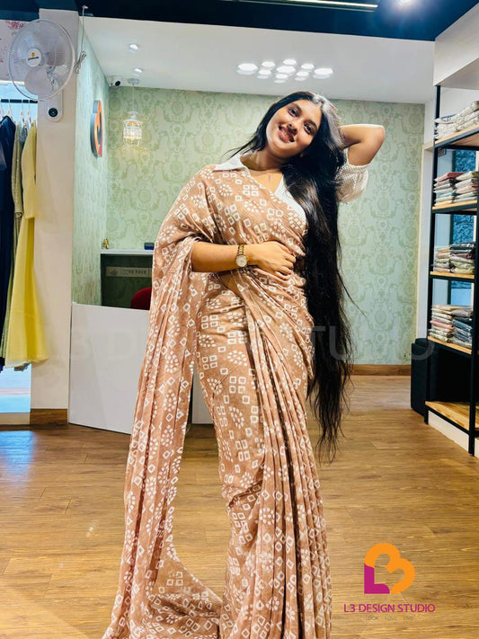 Off-White Assam Silk Saree with Indigo Blue Tie-Dye Pattern and Golden Zari Accents